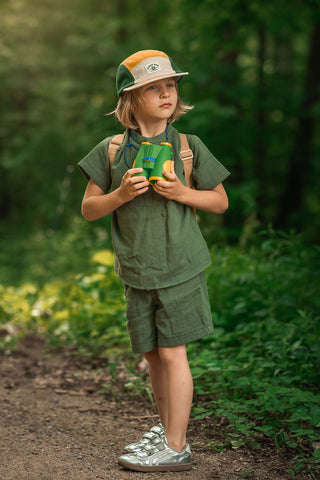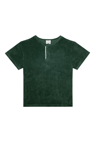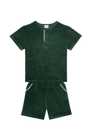 Green Towel Short Sleeve Tshirt Short Set with White Details