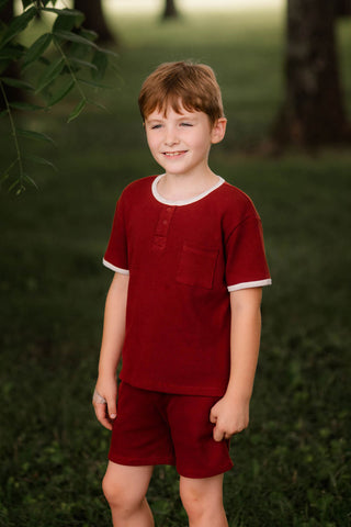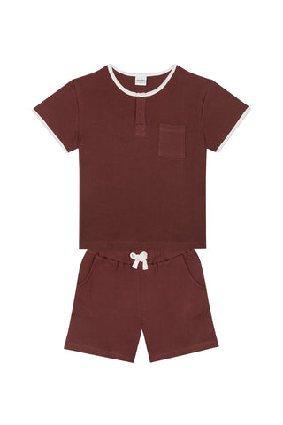 Tile Waffle Short Sleeve Tshirt Short Set with Contrast White