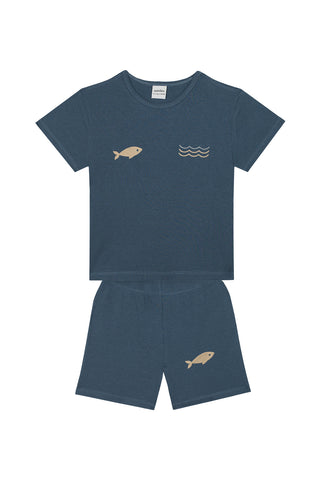 Blue Fish Parade Short Sleeve Tee Short Pyjama