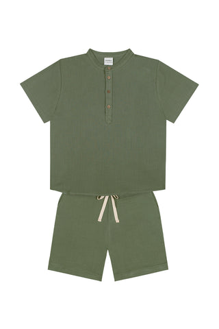 Green Muslin Short Sleeve Top Short Set